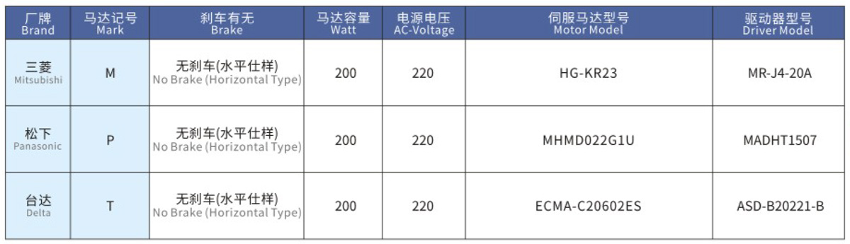搭配伺服马达一览表